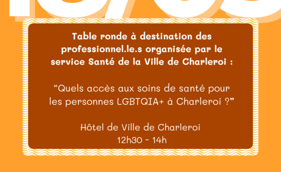 18/05/2026 @ 12:30 - 14:00 - Table ronde à destination des professionnel.le.s organisée par le service Egalité Des Chances de la Ville de Charleroi, en collaboration avec le service Santé, dans le cadre des actions de sensibilisation liées au 17 mai. Thème : "Quels accès aux soins de santé pour les personnes LGBTQIA+ à Charleroi ?" Lieu : Hôtel de Ville [...]
